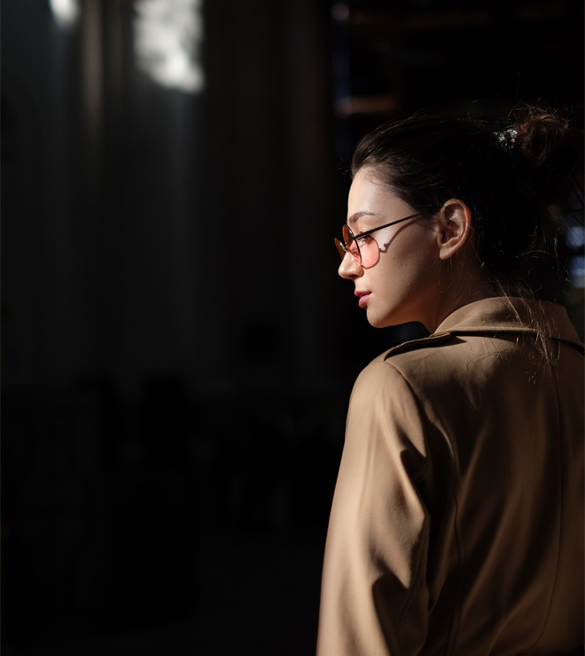 Eyeglasses and Brown coat